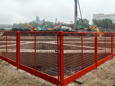 基坑護(hù)欄網(wǎng)是國家規(guī)定必須在施工現(xiàn)場安裝的,有效的防護(hù)隔離車輛人員掉入基坑。 基坑護(hù)欄網(wǎng)標(biāo)準(zhǔn): 1、開挖深度超過2m 及以上的基坑周邊必須安裝防護(hù)欄桿,防護(hù)欄桿的安裝應(yīng)符合規(guī)范要求; 2、基坑內(nèi)應(yīng)設(shè)置供施工人員上下的專用梯道。梯道應(yīng)設(shè)置扶手欄桿,梯道的寬度不應(yīng)小于1m,梯道搭設(shè)應(yīng)符合規(guī)范要求; 3、降水井口應(yīng)設(shè)置防護(hù)蓋板或圍欄,并應(yīng)設(shè)置明顯的警示標(biāo)志。 基坑護(hù)欄網(wǎng)規(guī)格: 網(wǎng)片:1300*2000mm 絲徑:4.0mm 網(wǎng)孔:25*25mm 邊框:30*30*1.5mm 鋼板:5.0mm